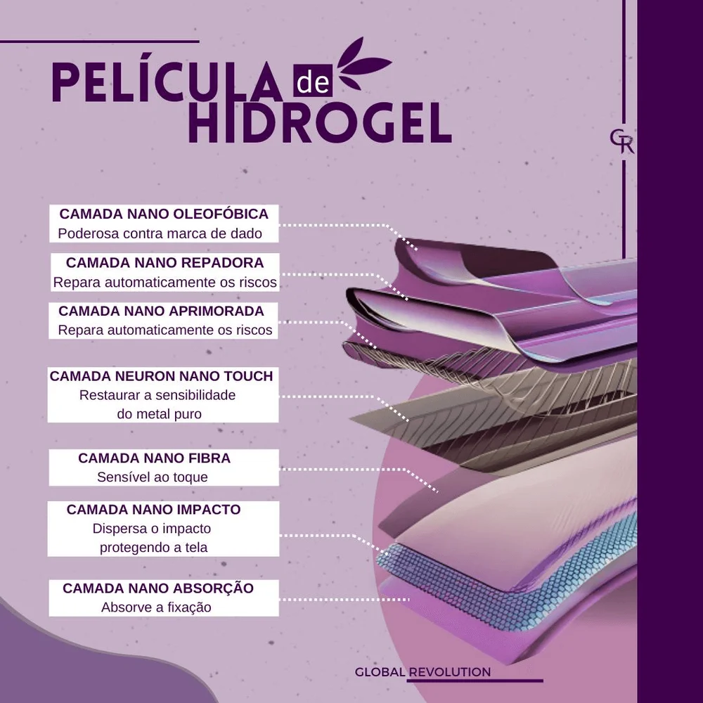 Características película *** é a única tecnologia que permite o uso de desbloqueio da tela pelo leitor digital ultrassônico do aparelho *** a película de hydrogel, possui uma série de vantagens sobre as películas de vidro. Pois possuem nano partículas que auto-reparam de pequenos riscos gerado por chaves, moedas ou até mesmo unha dos dedos assim se mantendo nova por muito mais tempo comparado com a de vidro que trinca facilmente. A película de hydrogel, possui qualidade anti queda, pois a película de gel distribui a energia de impacto. Além de oferecer grande proteção, a de gel também se adere muito melhor a tela, é flexível que se ajusta perfeitamente as telas curvadas. E ainda não compromete a sensibilidade do toque de tela e nem mesmo a qualidade de imagem da tela diferente da de vidro. - permite desbloqueio pelo sensor digital; - auto-reparo de riscos em até 48hs; - crystal transparente que proporciona efeito hd; - ultra-fino sem comprometer o toque a tela; - camada protetora oleofóbica; - cobertura completa da tela; - encaixe perfeito.