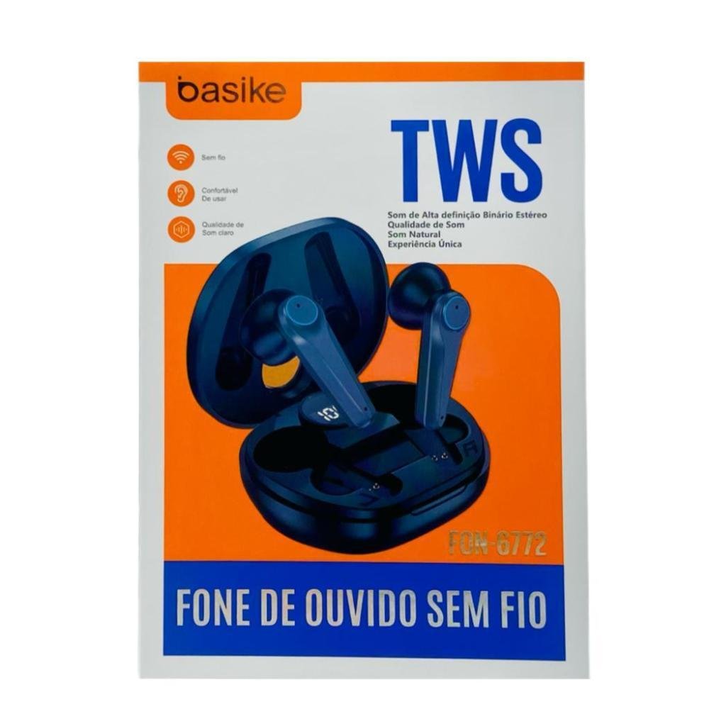 Fones bluetooth sem fio e confortável de usar. Possui som de alta definição binário estéreo, garantindo uma experiência única com qualidade de som. A duração da bateria para reprodução de música de 4 a 5 horas e o tempo de carregamento é de 1 a 2 horas. Distância de transmissão de até 13 metros em ambiente aberto. Produto original basike, homologado pela anatel. item incluso: 1 case de carregamento 1 par de fones peso: 150 gramas. Dimensões da embalagem: (l x a x p) 10 / 14/ 4,5 cm todos os produtos são bem embalados e protegidos. Possuem garantia de reembolso de sete (7) dias. importados navi atacado – a sua loja de eletrônicos completa e com o melhor preço. atendimento de segunda a sexta das 7h às 17h.