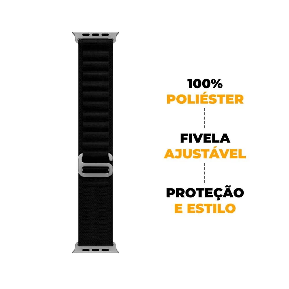 a pulseira para apple watch alpina loop, da gshield é a escolha perfeita para quem busca proteção e estilo. Feita com 100% poliéster de alta qualidade, essa pulseira é resistente e durável. Além disso, ela possui uma fivela ajustável que garante um encaixe perfeito no seu pulso.