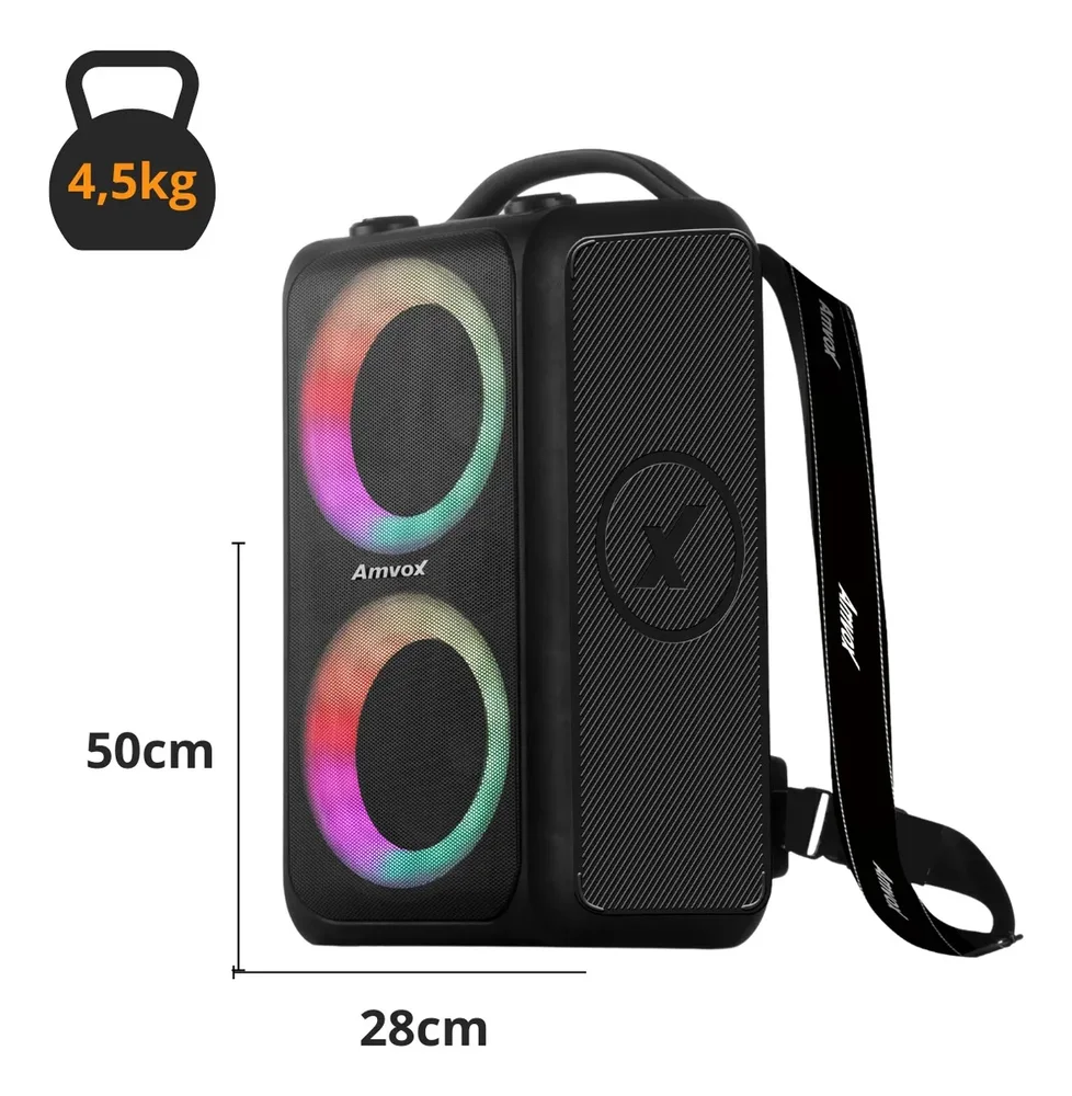 Caixa Som Bluetooth Portátil Amplificada 600w Rms Bateria Potente Amvox Aca 600 Bagvox