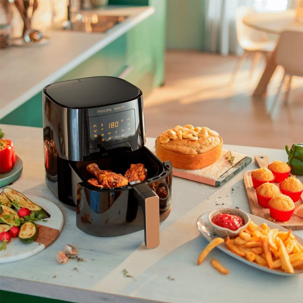 A Fritadeira Air Fryer Philips Walita Série 5000 é a solução perfeita para quem quer preparar alimentos crocantes e saborosos sem nenhum óleo. Com sua tecnologia RapidAir, a fritadeira circula o ar quente de forma uniforme, garantindo que os alimentos sejam cozidos de forma uniforme e deliciosa.