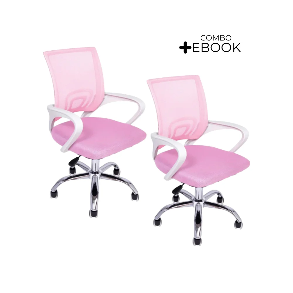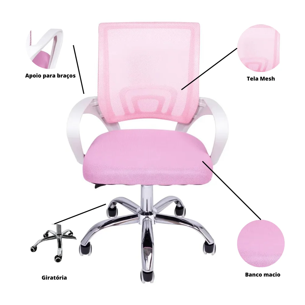 Kit 2 Cadeiras De Escritório Oficial Webshop Begonia, Suporta 120Kg, Mesh Ergonômico, Rosa