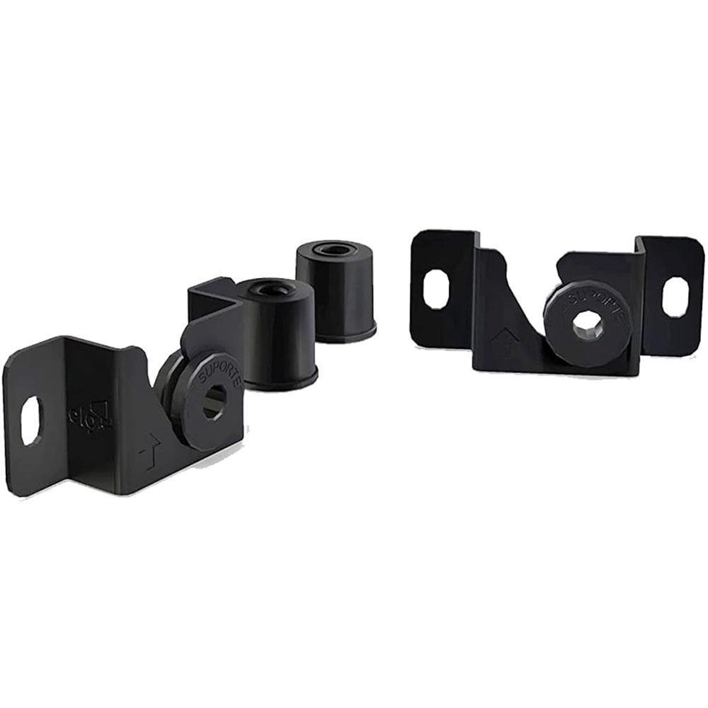 fixe as roldanas em sua tv de plasma/ lcd nos furos superiores . Nos furos inferiores fixe os calços na posição correta . Utilize as arruelas com os parafusos nos furos superiores e os parafusos nos inferiores . Atenção : esse suporte contém 4 kits de parafusos . Utilize apenas o kit compatível com seu modelo de tv . Com o auxílio de uma trena métrica meça de centro a centro das roldanas que já estão fixadas em sua tv . Anote esta medida . Defina o local onde será instalada sua tv. Para referenciar a altura utilize a relação entre ao centro da roldana já fixada na tv e o piso utilizando uma trena métrica . Já definido o local da instalação posicione os dois suportes da tv com o auxílio de uma outra pessoa . Utilize como referência os furos retangulares do suporte de fixação . Marque com um lápis os 4 pontos a serem furados . Não se esqueça de nivelar o suporte para que sua tv não fique desalinhada em relação ao piso . Utilize as buchas tipo nó para fixação do suporte na parede . Com o parafuso aperte até sentir firmeza da sustentação do suporte . Encaixe a parte superior da tv onde estão as roldanas nos suportes que estão fixados na parede