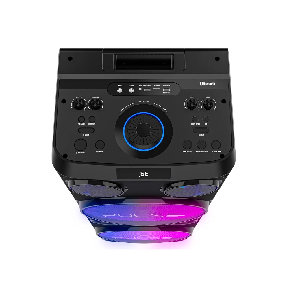 festa iluminada: os leds dinâmicos nos falantes frontais da pulse double criam uma atmosfera única para suas festas e eventos.