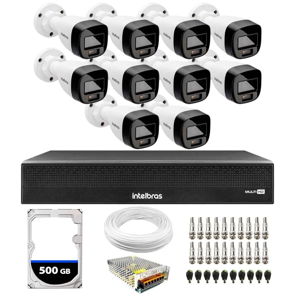 Kit 10 câmeras intelbras vhd 1220 b g8 full color bullet full hd 1080p multi hd ir 20m + dvr intelbras mhdx 3116-c 16 canais + hd 500gb