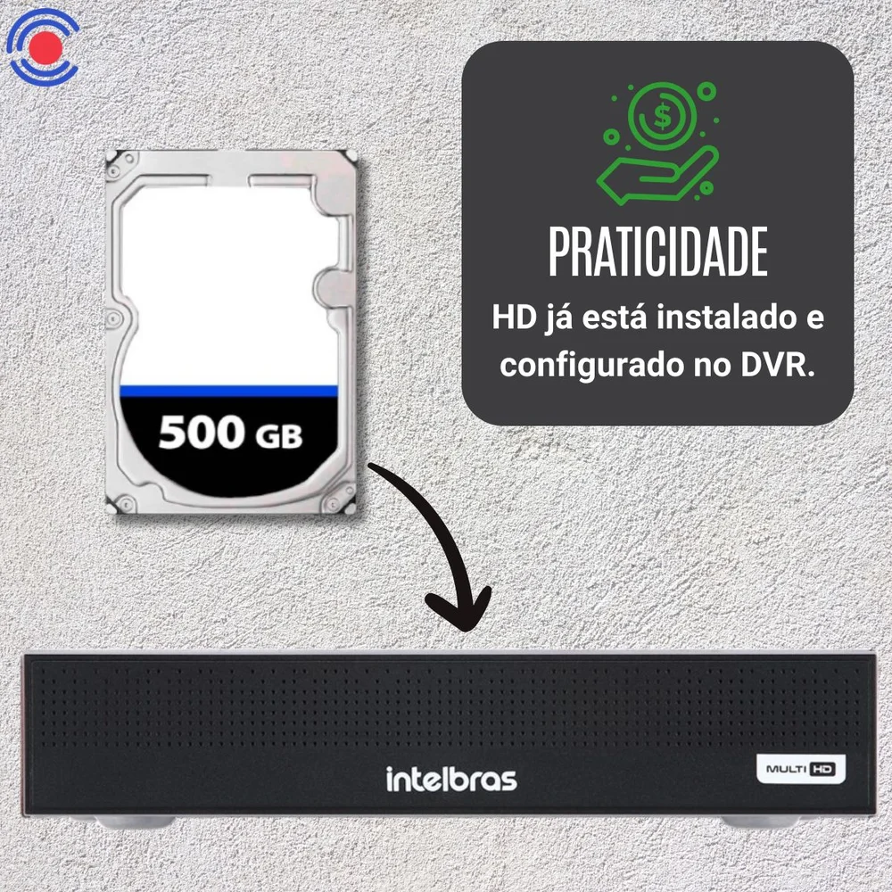 Kit 10 Câmeras Intelbras VHD 1220 B, G7 FULL Color Bullet, FULL HD 1080P, MULTI HD IR 20M + DVR Intelbras MHDX 3116-C, 16 Canais + HD 500GB