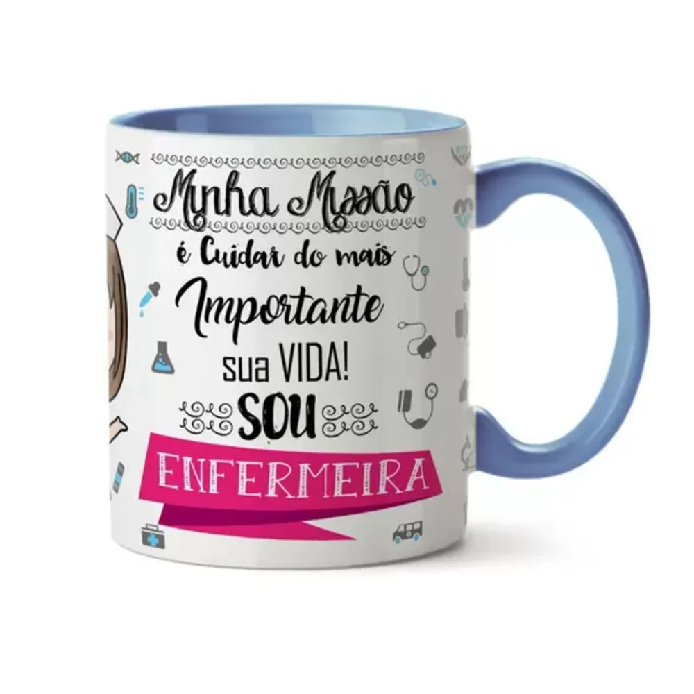 Caneca Sou Enfermeira Minha Missão É Cuidar Do Mais Importante, Sua Vida Alça E Interior Azul