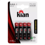 Pilha Alcalina Kian Aaa 1,5v Palito Blister, Com 4un Lr03