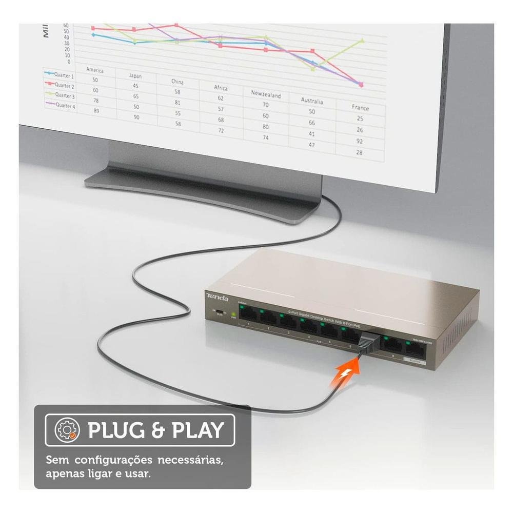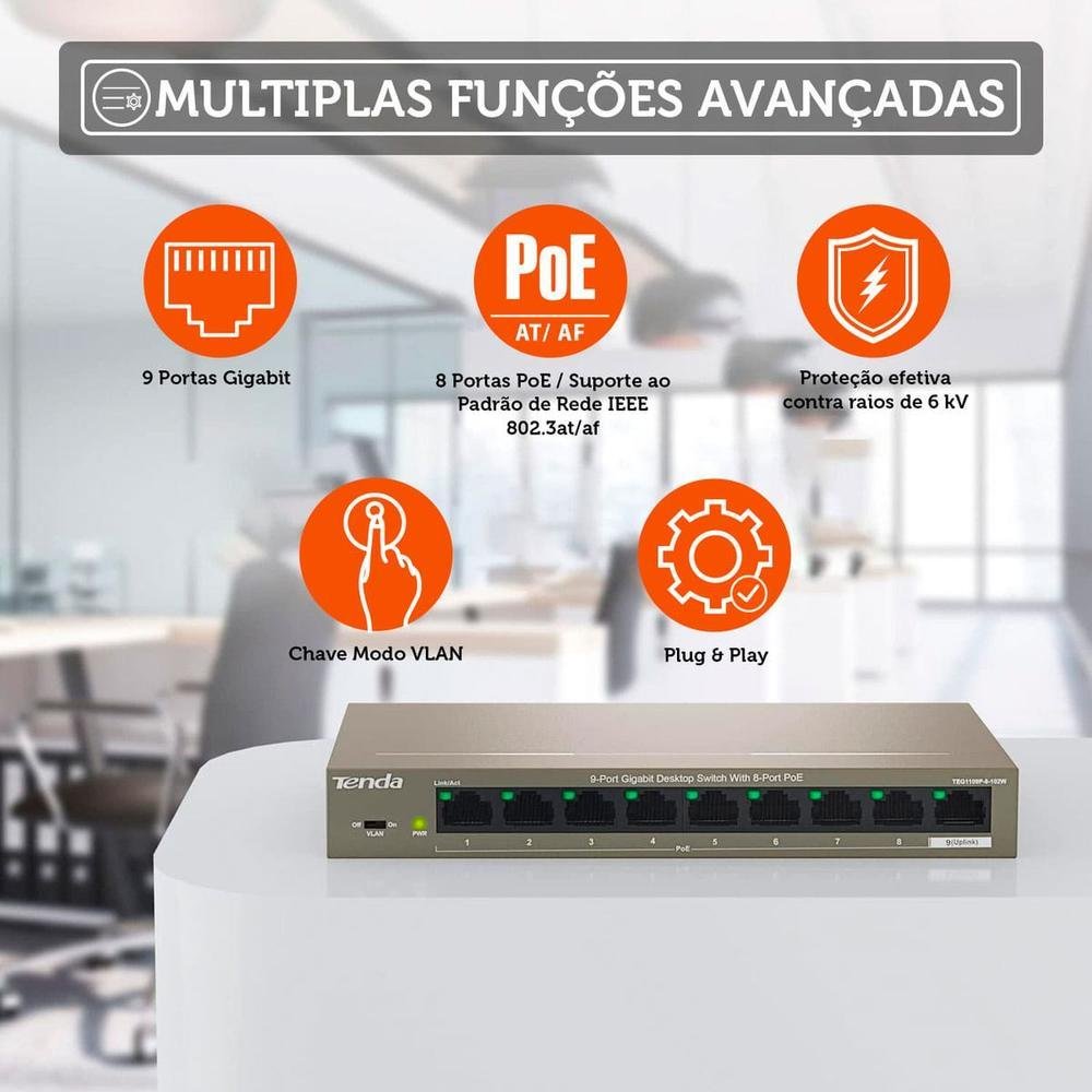 Switch Tenda 9 Portas Giga + 8 Portas Poe - Teg1109p-8-102w