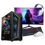 Placa-mãe\nchipset: amd b450 socket: am4 memória: ddr4 rede: 10/100/1000 mbps\nprocessador\nmarca: amd modelo: ryzen 5 5500 nº de núcleos: 6 nº de threads: 12 velocidade base: 3.6 ghz velocidade turbo: 4.2 ghz gráfico integrado: não\nplaca de vídeo\nmodelo: geforce rtx 3060 nº de núcleos: 3584 (nvidia cuda) velocidade base: 1.32 ghz velocidade turbo: 1.78 ghz interface de memória: 128-bit\nmemória ram\ncapacidade total: 16 gb (2x 8 gb) velocidade: 3.200 mhz tecnologia: ddr4\narmazenamento\ntipo: ssd formato: 2,5" (100 x 69,9 x 7 mm) interface: sata iii capacidade: 480 gb\nfonte\npadrão: atx (12 v) dimensões: 150 x 85 x 140 mm potência de saída: 600 w certificação: 80 plus tecnologia: pfc ativo tensão de entrada: 110 ~ 220 v (incluso cabo de energia)\ngabinete\nmodelo: gabinete gamer com faixa led tipo: mid tower cor: preto (com vidro temperado transparente) suporte para radiador: frente: 240mm (não incluso) | traseiro: 120mm (não incluso) suporte para ventoinhas: frente: 3x 120mm (incluso) | topo: 2x 120mm (não incluso) | traseiro: 1x 120mm (incluso)\nmonitor\ntamanho da tela: 21.5" polegadas resolução: 1920x1080 taxa de atualização: 75hz\nkit gamer\nmouse: gamer usb teclado: gamer usb headset: gamer p2\nsistema operacional\nedição: windows 10 pro x64 (versão trial)\ngarantia\n12 meses: 3 meses de garantia direta conosco e 9 meses de garantia com o fabricante.