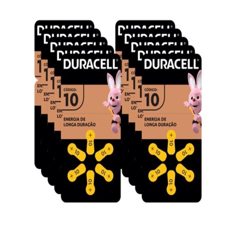 60 Pilhas Auditivas Nº A10 / Pr70 Duracell, Com 6 Unidades
