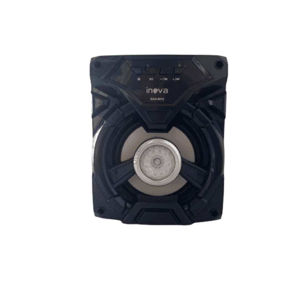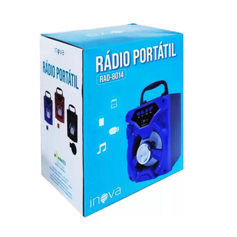 A caixa de som rádio portátil inova rad-8014 bluetooth sem fio rádio fm 10watts de potência de saída. A caixa de som bluetooth família inova possui som incrível, com um design compacto em forma de torre obtenha pressão sonora em um mini system de belo design. Com a transmissão via bluetooth sem fio facilidade para conexão e escutar suas músicas em movimento conectado com celular tablete ou simplesmente ouvido sua rádio fm favorita. Com o ótimo sistema de bass transmita suas músicas favoritas em um som alto e nítido a qualquer momento, com um alto-falantes hifi de longo alcance, você vai incrementar ainda mais suas batidas e turbinar suas faixas favoritas. Luzes led melhore o clima da festa com as luzes led coloridas que alternam aleatóriamente com efeitos de dj monte a pista de dança e faça a sua própria festa! Além de tudo essa caixa conta com uma bateria interna de alta capacidade, além de permitir o uso de uma bateria externa para estender mais sua diversão mesclando isso com a portabilidade de leva-la para onde desejar.