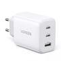 Carregador Rápido Ugreen 2 Em 1, USB C E A Gan Pd 65w, Branco