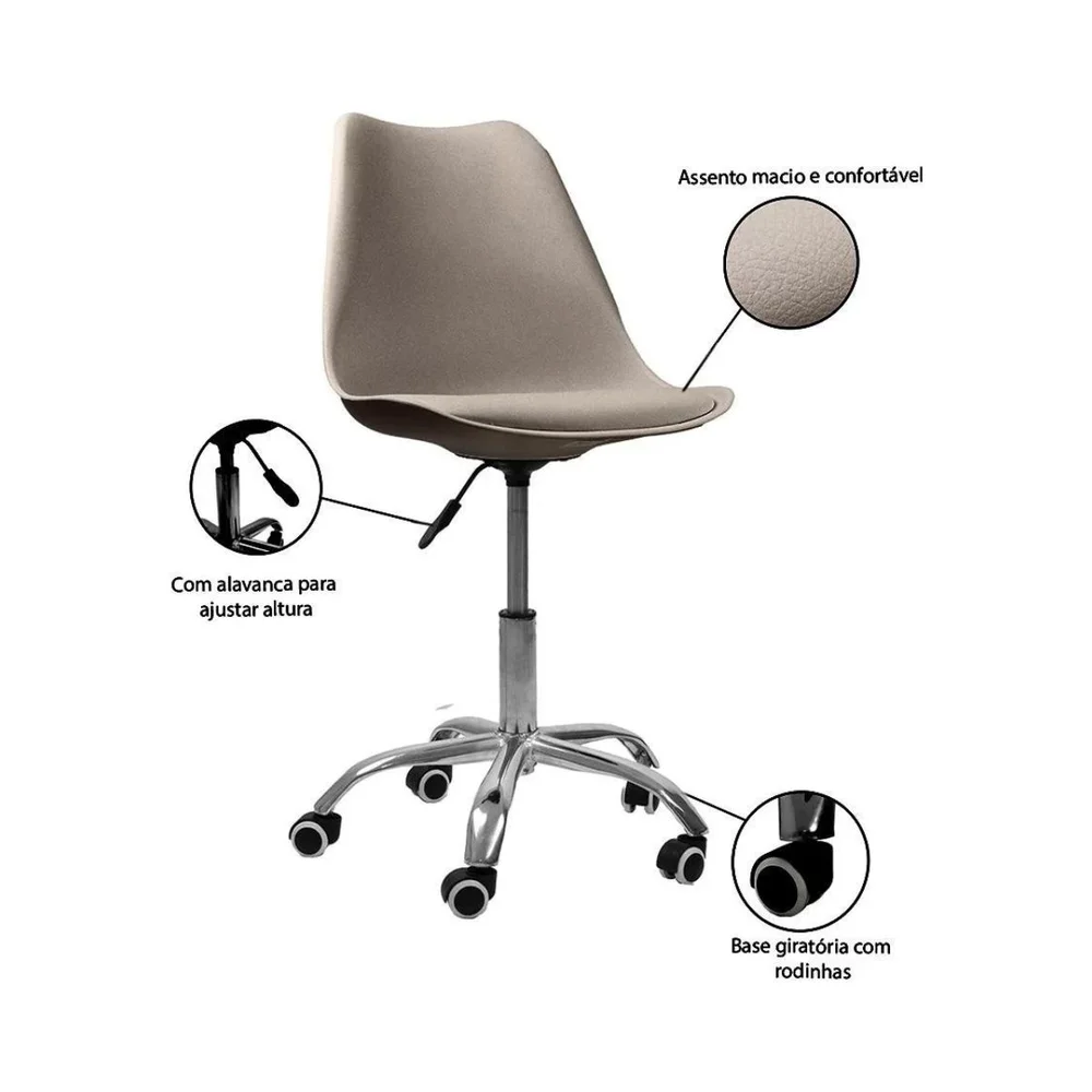 Kit 2 Cadeiras Office, Com Rodizio Giratória, Saarinen, Bege