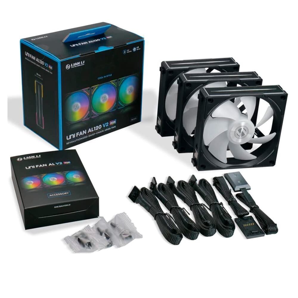 Kit com 3 Ventoinhas Lian Li UNI FAN AL V2, 120mm, RGB, Preto - UF-AL120V2-3B