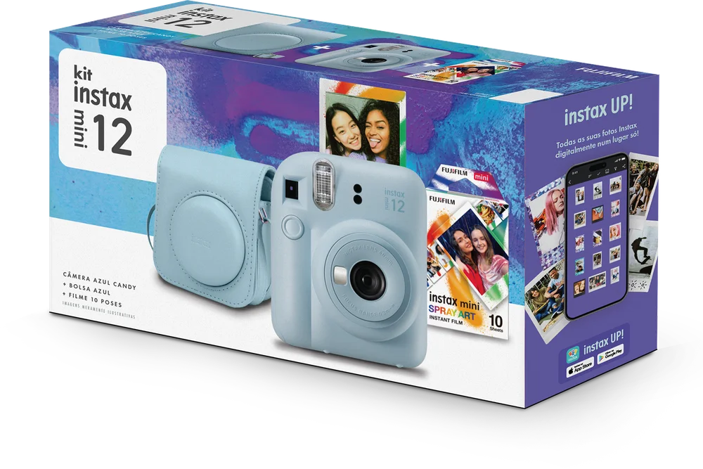 aproveite o kit instax mini 12, que inclui tudo que você precisa para começar gravar seus momentos mais importantes em papel! Este kit é composto por uma câmera instax mini 12 na cor azul candy, um pack de filmes instax mini macaron com 10 fotos e uma linda bolsa oficial instax mini 12 com alça, feitas em tecido sintético com acabamento texturizado, combinando com a cor da câmera. A bolsa é modelada exclusivamente para o modelo mini 12 da instax e acomoda a câmera perfeitamente!além de proteger a sua instax mini 12, a nova bolsa conta com um design agradável e moderno.faça fotos com muita luz e obtenha imagens instantâneas com facilidade!a instax mini 12 rosa gloss chegou e está repleta de alegria, criatividade e cor. Esta icônica câmera instantânea está repleta de modos e controles fáceis de usar. A velocidade do obturador, o brilho do flash e outras configurações se ajustam automaticamente à luz do ambiente, permitindo que você tire fotos sem complicações. Basta apontar e clicar.fácil de usar para fazer o close-up perfeito!projetada para acompanhar a vida, a instax mini 12 está pronta para o uso, bastando girar a lente para ligar a câmera. Gire novamente e você estará no modo close-up, ideal para fotografar de perto.selfies? A instax mini 12 é a câmera ideal para isso!combinado com o espelho de selfie perfeitamente posicionado na frente da câmera, o modo close-up da mini 12 é extraordinária para capturar seus momentos especiais. Se você aparecer no espelho de selfie, você estará na foto. É simples assim. O flash se ajusta automaticamente, mesmo no modo close-up, para garantir que as fotos nunca fiquem desfocadas ou sobre-expostas!visor com correção de paralaxe.mesmo no modo close-up, o enquadramento da imagem que você vê no visor agora está muito mais próximo do resultado na foto. O que você vê é o que você obtém.compartilhe suas fotos digitalmente com o app instaxup!quando terminar de capturar memórias, gire a lente novamente para desligar a mini 12. Mas a diversão não precisa terminar aí. Baixe o instaxup! App para uma nova maneira brilhante de manter todas as suas fotos instax digitalmente em um só lugar. Tudo o que você precisa fazer é fotografar suas impressões físicas com a câmera do seu smartphone e elas serão transformadas em instantâneos digitais compartilháveis que você pode editar, marcar seus amigos e salvar.principais recursos:- foto instantânea: uma experiência única! Onde as fotos são reveladas instantaneamente à frente dos seus olhos (até 2 min. Após o clique);- exposição automática: a câmera identifica as condições do ambiente e realiza automaticamente os ajustes necessários para que você registre suas fotos sem se preocupar com qualquer regulagem;- modo selfie & close up: é possível tirar fotos com aproximação de 30 cm a 50 cm de distância com maior riqueza de detalhes;- espelho selfie: localizado ao lado da lente para que você possa enquadrar perfeitamente seu autorretrato;- flash: ajustado automaticamente conforme a luz do ambiente fotografado. Ideal para diversas situações do dia a dia, como festas, momentos com amigos, eventos familiares, viagens, entre outras ocasiões.- basta girar para ligar e desligar.