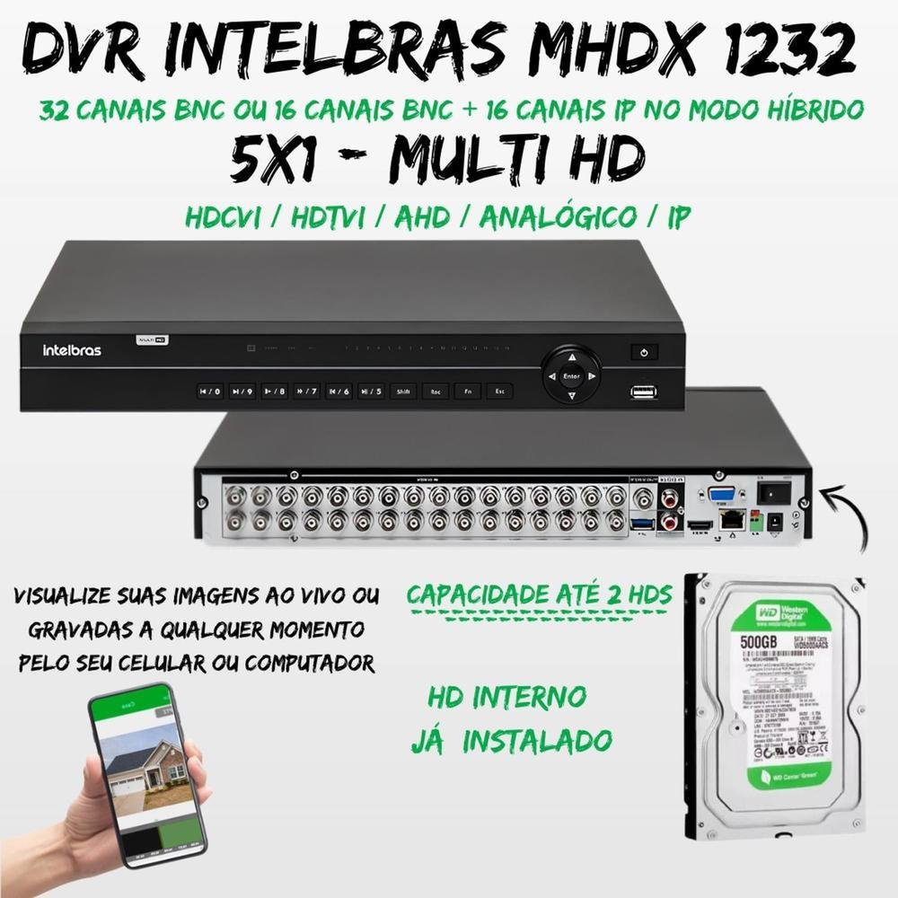 Kit Intelbras, Dvr Mhdx 1232-c, 32 Canais, Multi HD + HD 500GB