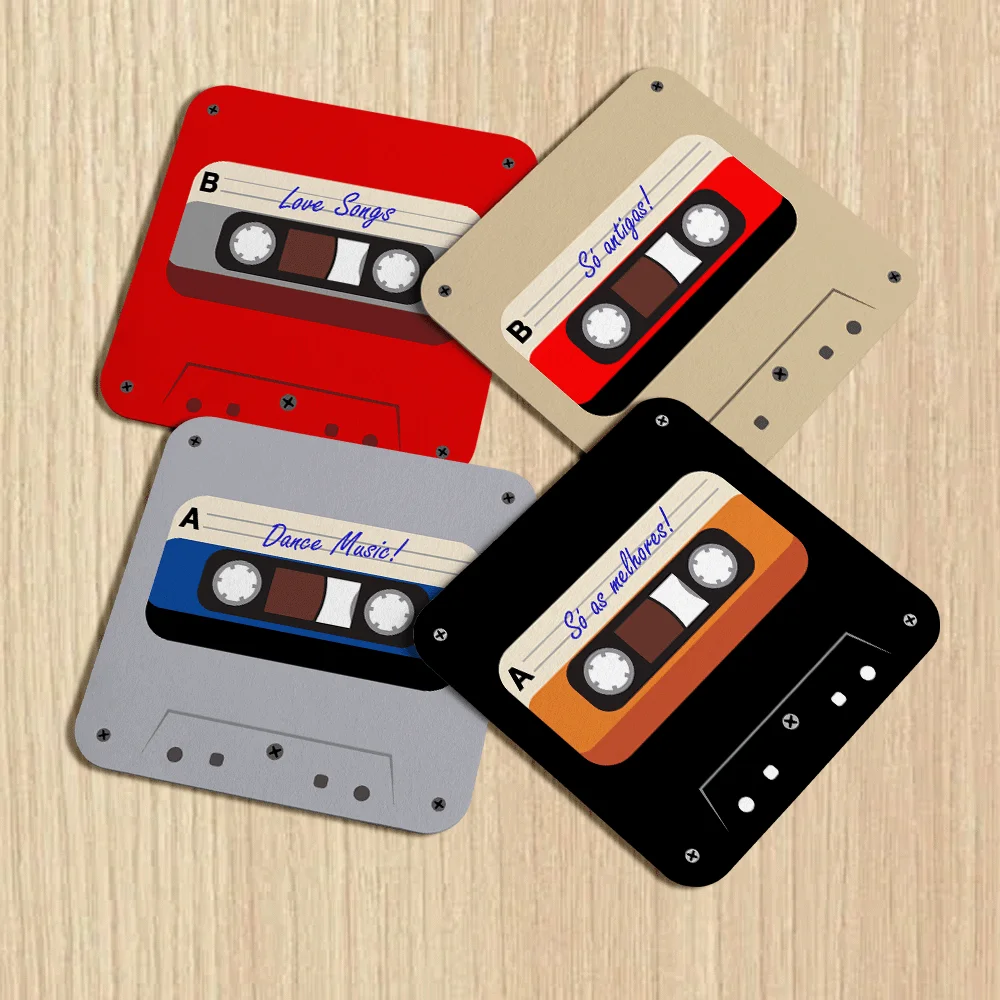Porta Copos Geek Jps Info, Fita Cassete K7 Retro, 4 Peças