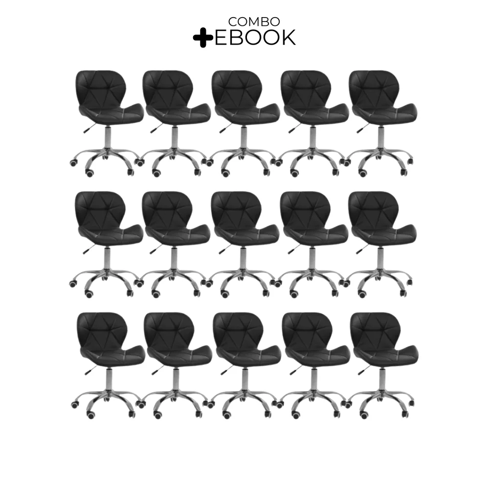 Kit 15 Cadeiras Office Eiffel Slim Oficial Webshop, Ajustável, Giratória, Preta