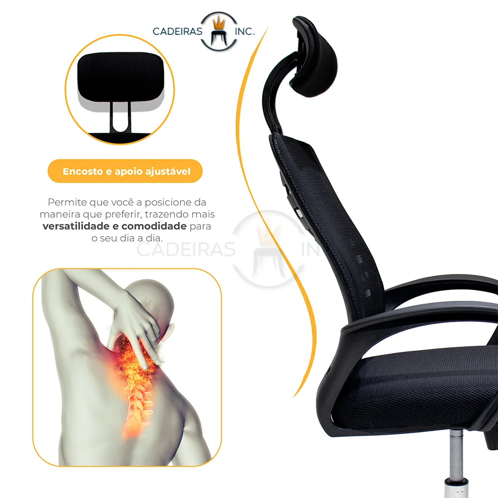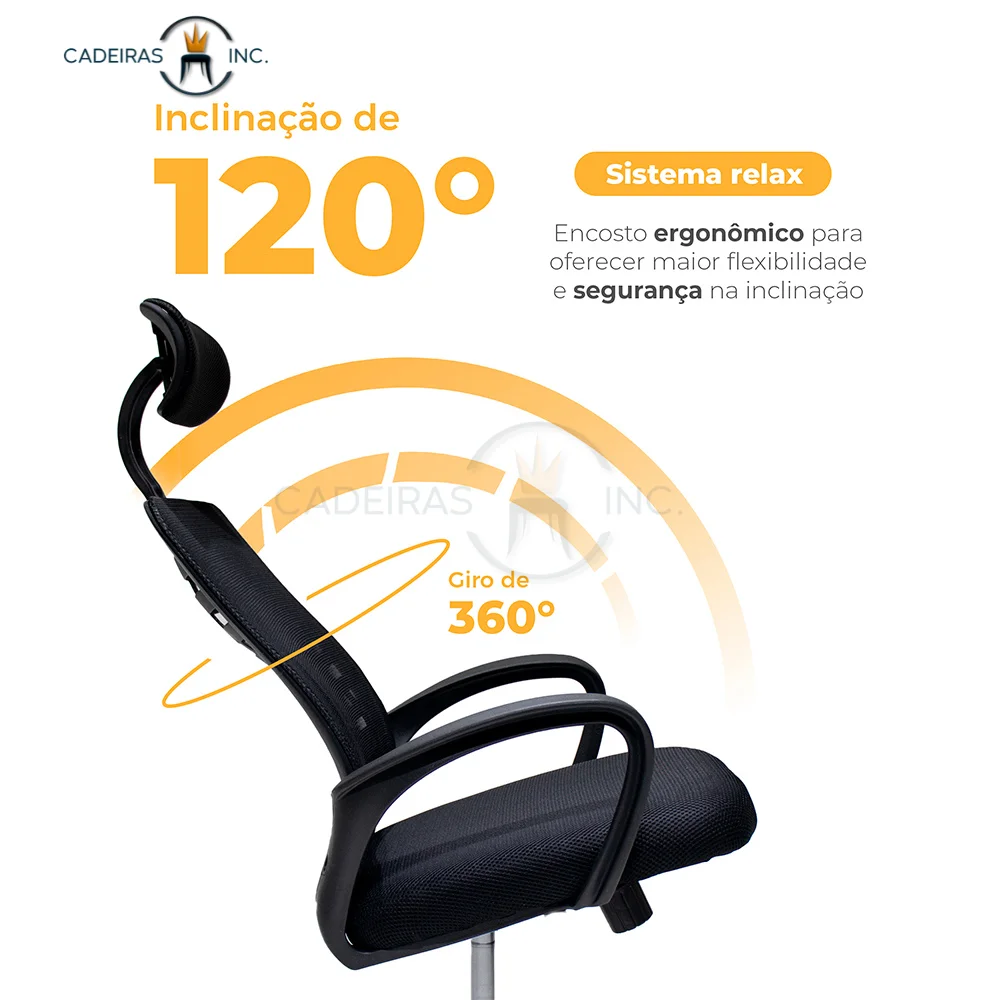 Cadeira De Escritório Tela Mesh Ribs Com Apoio De Cabeça e Sistema Relax