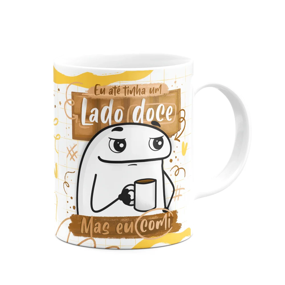 Caneca Divertida Flork - Eu Até Tinha Um Lado Doce, Mas Comi