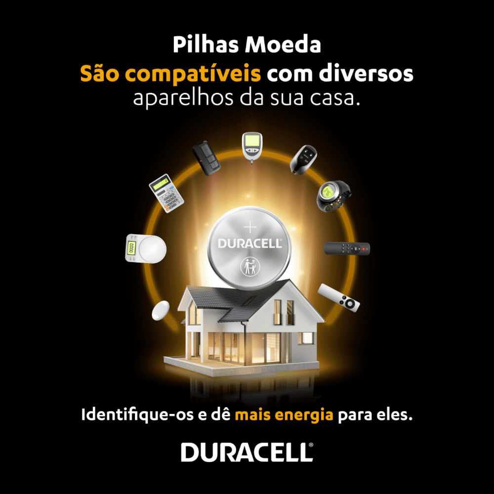 As pilhas moeda duracell 2032 são fabricadas com lítio de elevada pureza e têm energia de longa duração para diferentes equipamentos. A tecnologia de duracell preserva a energia das pilhas que ainda não foram usadas, por até 10 anos. A embalagem reforçada garante a segurança dos seus filhos: ela só pode ser aberta com uma tesoura. As pilhas moeda são concebidas para uso em chaveiros, controles remotos, chaves de carro, balanças, calculadoras, acessórios vestíveis (como óculos e relógios), sensores, equipamentos médicos (medidores de glicemia, termômetros digitais), aparelhos desportivos (medidor de ritmo cardíaco, acessórios de ciclismo), entre outros. pilha tipo moeda de lítio especializada 2032 de 3 volts 1 embalagem. projetado para uso em balanças de cozinha, glicômetros, termômetros, sensores e lâmpadas led, entre outros. Validade: 01/2032