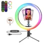 Iluminador Led Circular 8´´ Mj20 Rgb 25w Soft Ring Light Live 20cm Usb Com Mini Tripé E Suporte Smartphone