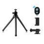 Diferente dos modelos tradicionais, o tripé articulado se molda de acordo com sua necessidade, até mesmo em superfícies irregulares. Pendure-o onde preferir e capture as melhores imagens com sua GoPro, câmera DSLR, câmeras compactas com encaixe padrão 1/4 polegadas ou celular. Ele mede 25cm e conta ainda com encaixe de parafuso com rosca padrão 1/4 de polegadas, que possibilita conectar pequenas câmeras DSLR e outros acessórios. Acompanha um adaptador para câmeras de ação GoPro e suporte de celular, para telas entre 5,5 e 8,5cm de largura. Além disso, vem com um versátil controle remoto disparador, via bluetooth, compatível com celulares Android e IOS, que funciona a uma distância de até 10m.