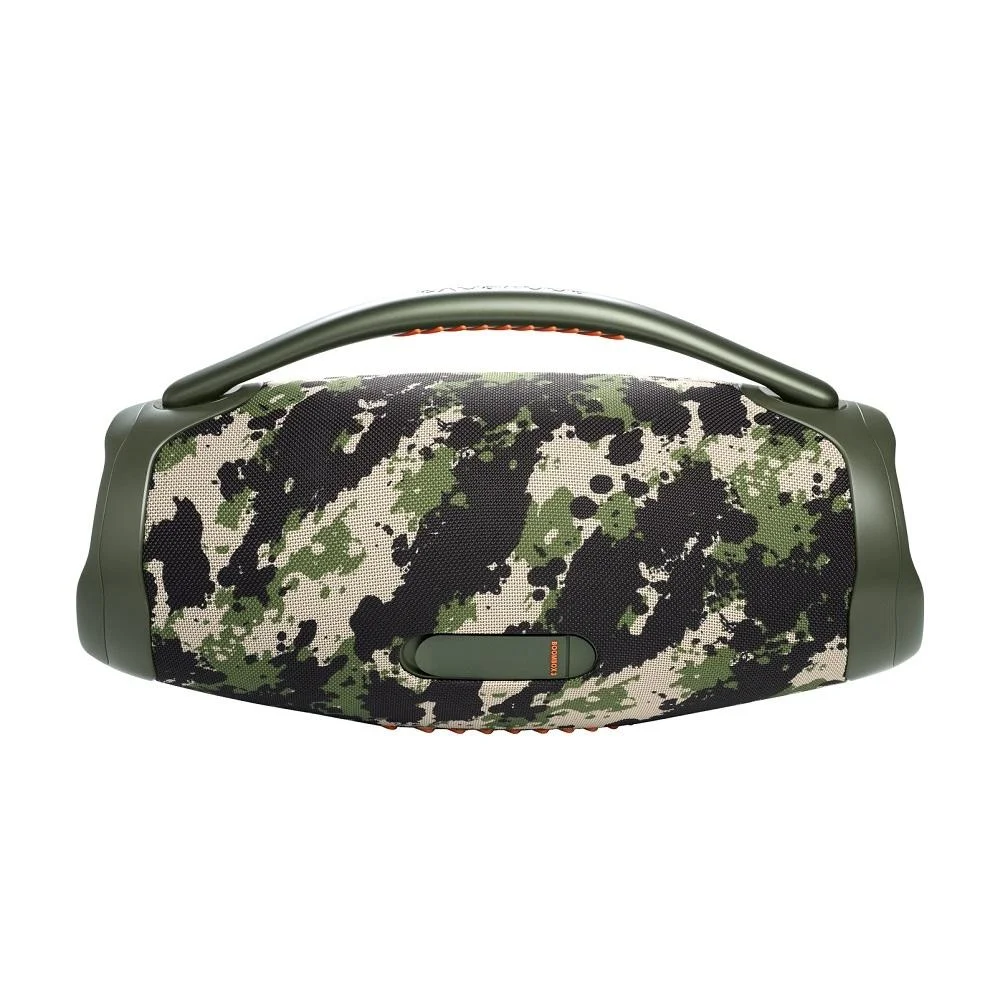 Caixa de som jbl boombox 3acabamos de tornar a nossa mais poderosa caixa de som bluetooth portá,til ainda melhor. A silhueta icô,nica da jbl boombox 3 tem uma nova e ousada atualizaç,ã,o com uma alç,a de metal resistente e partes em silicone, tampas laterais duplas e tecido exclusivo à, prova d´á,gua e à, prova de poeira. Ela també,m foi redesenhada por dentro, acrescentando um novo subwoofer que reproduz graves muito mais profundos e o potente jbl original pro sound, tudo sem qualquer sinal de distorç,ã,o e até, 24 horas de reproduç,ã,o levam você, desde o treino matinal até, um fim de noite com seus amigos. E para um som praticamente ilimitado, conecte instantaneamente vá,rias caixas de som com o aplicativo jbl portable.especificaç,õ,es de á,udio- resposta de frequê,ncia dinâ,mica: 40 hz - 20k hz- potê,ncia: 180 w rms (ac), 136 w rms (bateria)- transdutor: subwoofer de 189 x 114 mm, 2 x 80,9 x 80,9 mm, mé,dio alcance/2 x 2,75 pol., 2 x f20 mm tweeter/ 2 x 0,75 poldimensõ,es- dimensõ,es (cm): 48.2 x 25.7 x 20.0- peso (kg): 6.7conectividade- conexõ,es de entrada: usb-c entrada aux (3.5mm)- bluetooth: sim- versã,o bluetooth: 5.3 (le ,audio ,ready) ,¿,- wifi: nã,o- conexã,o com vá,rias caixas: jbl partyboost (até, 100 caixas) modo esté,reo (d/e)- aplicativo (app): app jbl portablebateria- tipo de bateria: bateria de polí,mero í,on-lí,tio - capacidade (mah): 10.00mah- tempo de reproduç,ã,o: até, 24 horas- tempo de carregamento: 6.5 horas- indicador de ní,vel de bateria: sim- powerbank: simproteç,ã,o- à, prova d´á,gua: sim- resistente a á,gua: sim- resistente a poeira: sim- resistente a impactos: nã,o- ip - international protection: ip67materiais e acessó,rios inclusos na embalagem1x jbl boombox 31 x jbl cabo de energia ac (o plugue ac e a quantidade variam conforme a regiã,o)1 x guia de iní,cio rá,pido1 x cartã,o de garantia1 x ficha de seguranç,a