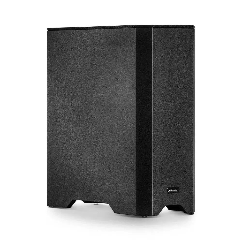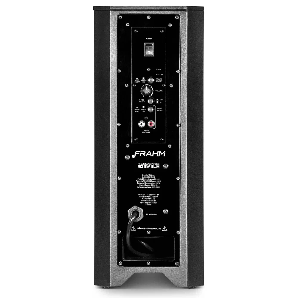 O tratamento acústico recebe grande importância para o desempenho excepcional do rd sw slim da frahm, devido ao seu tamanho, o produto utiliza volume interno reduzido, entretanto, para extrair seu máximo desempenho, a equipe de especialistas da frahm, desenvolveu um duto exclusivo em formato espiral de grande profundidade, extraindo do produto toda profundidade e potência de um ótimo subwoofer.
