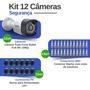 Kit 12 Câmeras, Bullet, FULL HD 1080p, Lente 2.8mm, Visão Noturna 20m, Ip66 + Conectores
