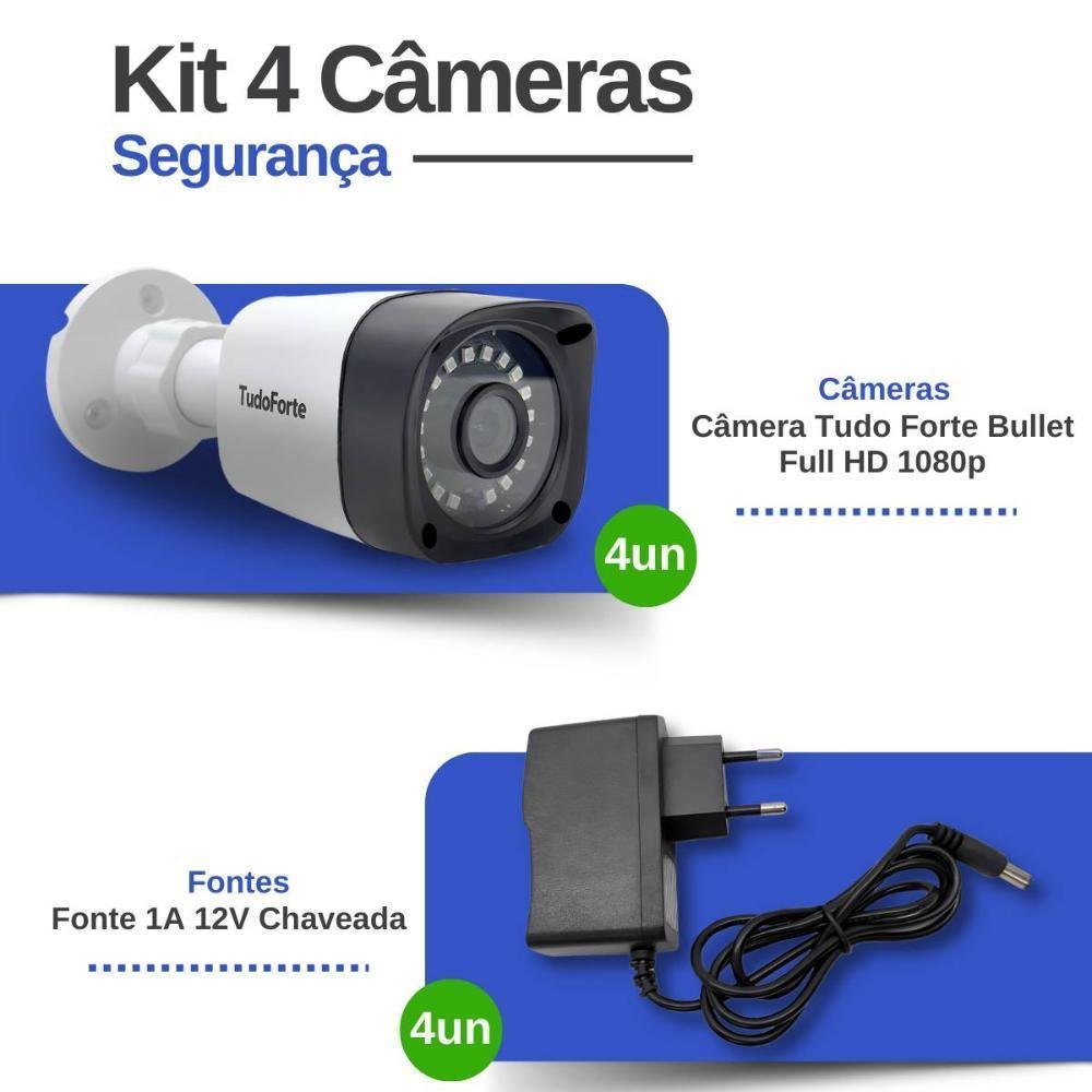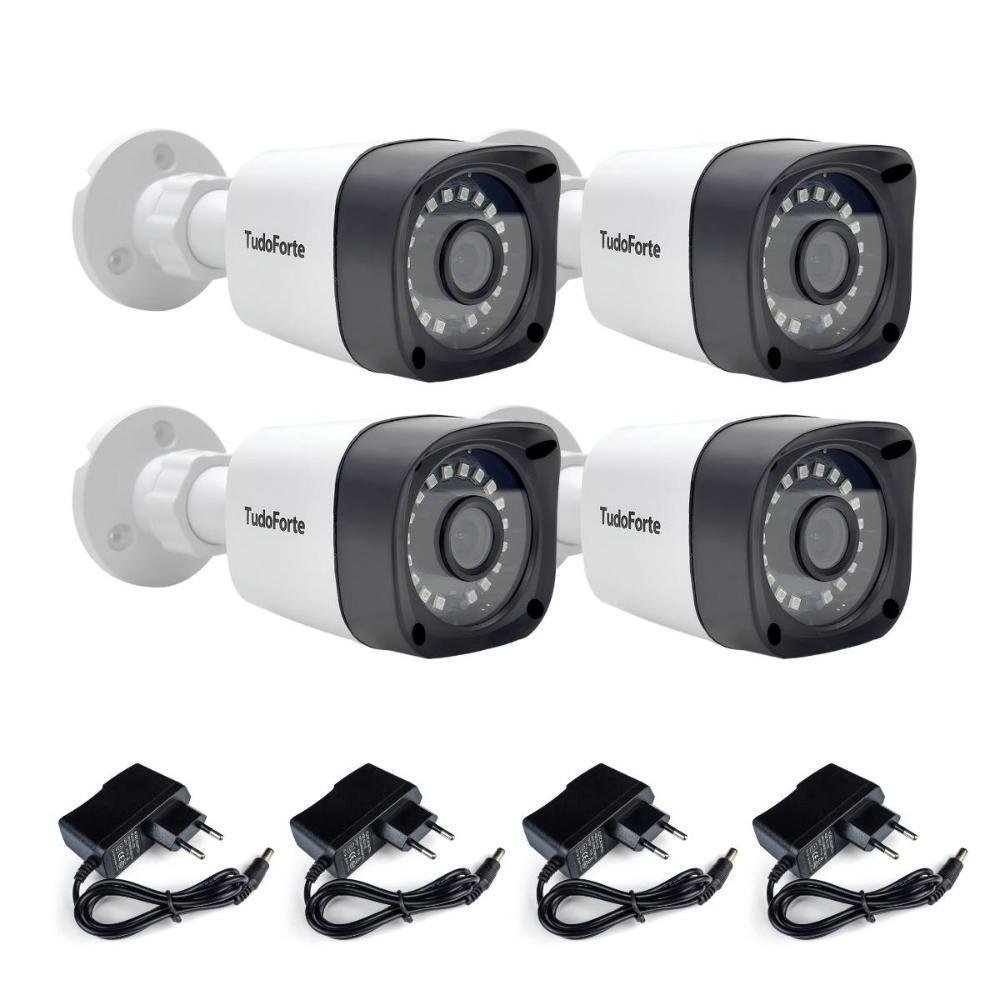 Kit 4 Câmeras De Segurança Full Hd 1080p 2mp Bullet 20 Metros Infravermelho Lente 2.8mm Tudo Forte + Fontes