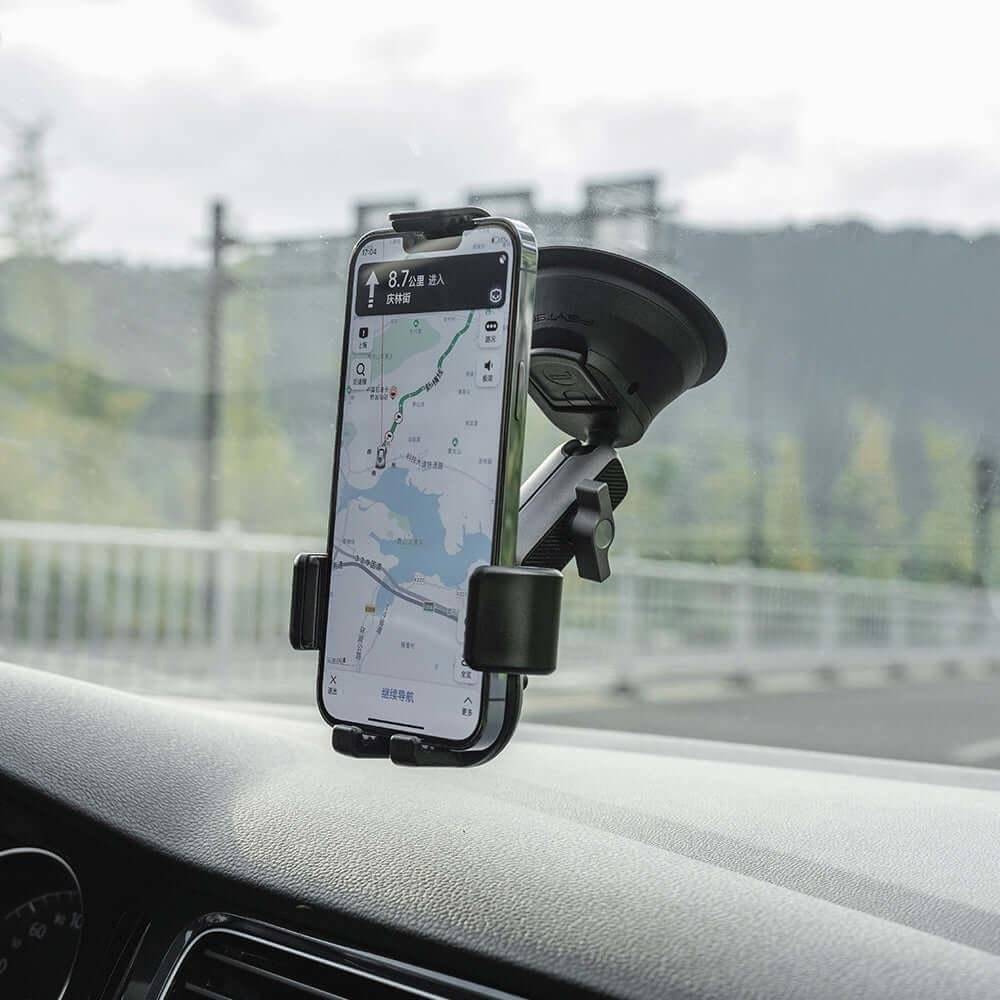 O suporte onde encaixa o celular conta com design em formato de berço, que envolve firmemente os quatro cantos do aparelho, enquanto uma borracha embutida protege contra choques e abrasão. As garras se abrem com o apertar de um botão e fecham com um simples aperto. O encaixe esférico permite o ajuste de inclinação e rotação. Um recorte inferior projetado para manter livre a entrada conectora permite navegação e carregamento ao mesmo tempo.