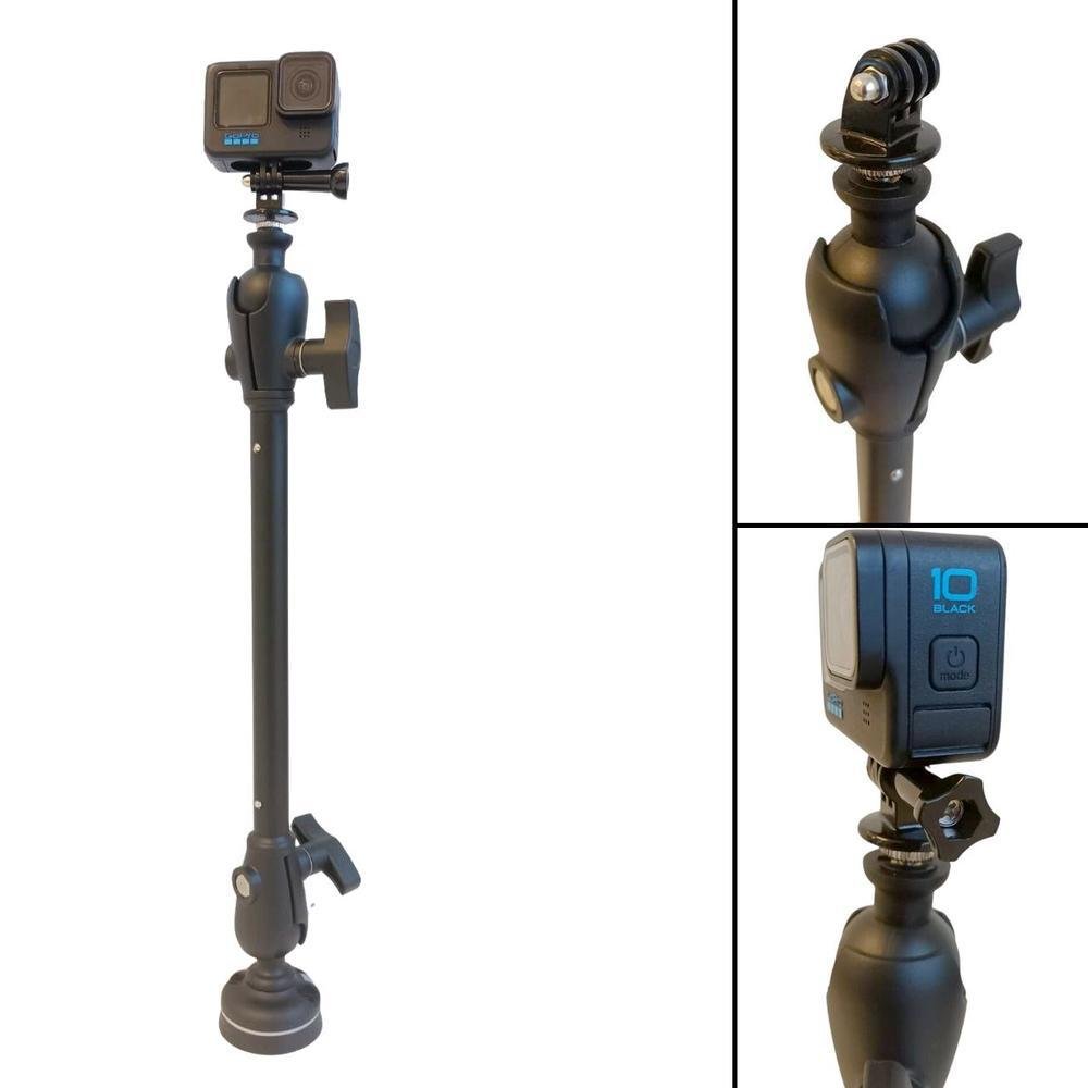 aproveite a pescaria de forma mais tranquila enquanto deixa a sua câmera de ação registrando tudo. Com este suporte em alumínio para fixação de câmeras de ação em caiaque, você poderá fixar facilmente a sua câmera de ação gopro ou de modelos similares com suporte de 2 pinos em seu caiaque, canoa, barco baixo, iate ou outra embarcação marítima.