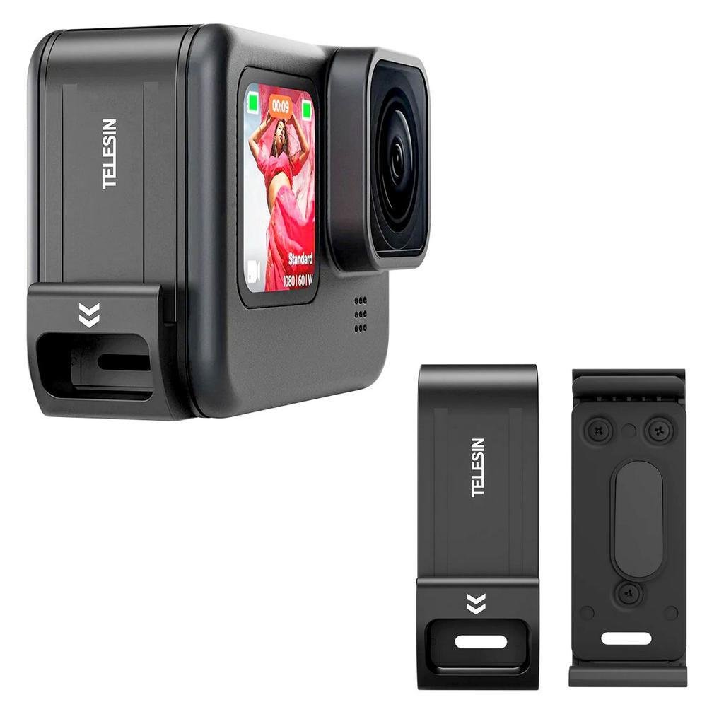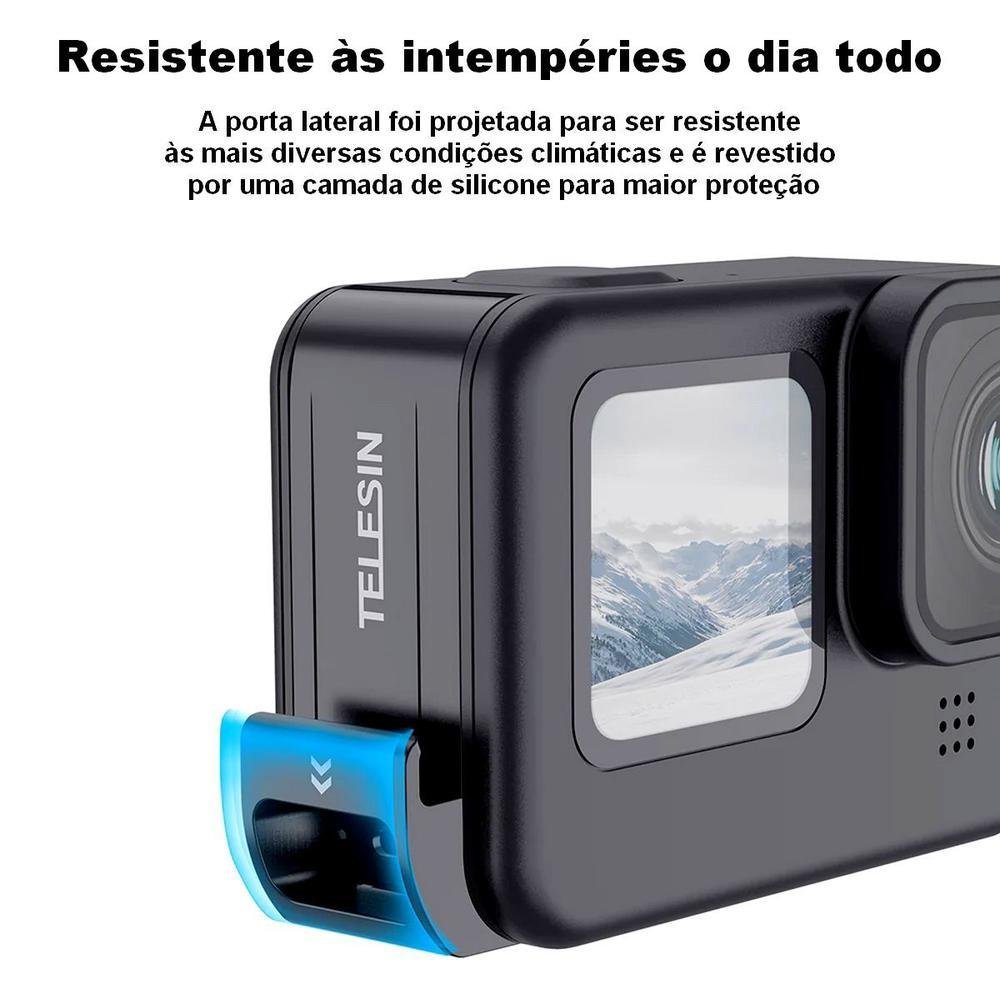pensando nisso, a telesin projetou esta porta/tampa lateral aberta e resistente ao tempo, incorporando um slot protegido por silicone e espuma que permite que você carregue sua bateria enquanto usa sua câmera gopro hero11, hero10 ou hero9. Esta porta de bateria durável substitui a porta original e pode ser facilmente conectada e removida (confira as imagens do produto para tutorial de instalação/remoção).