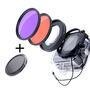 observação importante: esses filtros são projetados especificamente para uso com caixas estanque, sendo compatíveis com lentes de 46 mm. A caixa estanque não está inclusa com o kit.