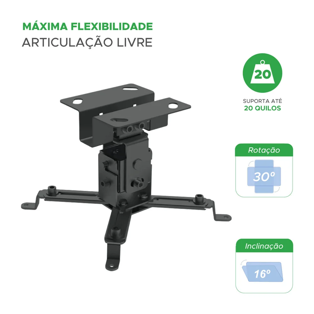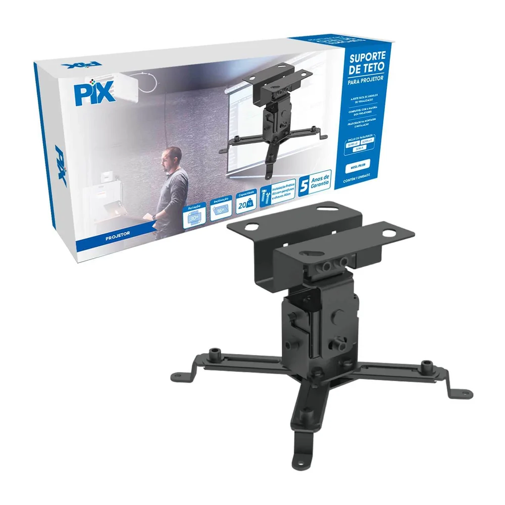 Na hora de fazer uma apresentação corporativa, transmitir um evento esportivo ou até mesmo para assistir a um filme em casa com imagem de cinema, além de um projetor de qualidade, um suporte adequado e seguro é fundamental. O suporte de teto da pix é de fácil instalação, com ajuste para vários ângulos de visualização, e compatível com a maioria dos projetores.