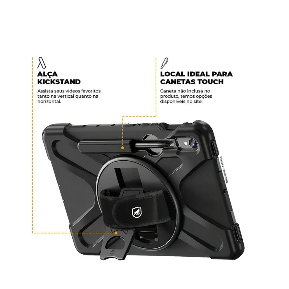 Leia antes de comprar os fabricantes de smartphones e smartwatchs possuem variaç,õ,es de tamanho para cada tipo de produto, geralmente as mudanç,as de dimensõ,es sã,o acompanhadas pelo tamanho em polegadas ou pelas palavras: plus, +, pro, play, lite, se, mm, entre outras, confira antes da compra se seu dispositivo é, compatí,vel com o produto anunciado e evite transtornos em sua compra. Qualquer dú,vida utilize o campo de perguntas no final da pá,gina ou leia as avaliaç,õ,es de outros consumidores.descriç,ã,o proteja seu samsung galaxy tab s9 fe com a capa phantom da gshield!fabricada por um polí,mero de alta resistê,ncia e com encaixe perfeito no tablet, que possibilita a proteç,ã,o das bordas e traseira do dispositivo com toque macio, suave e antiderrapante, possui uma elevaç,ã,o em todas as extremidades que evita que a tela entre em contato direto com as superfí,cies.a capa phantom possui na sua traseira uma alç,a kick stand e uma alç,a em velcro com rotaç,ã,o 360º,, que possibilita utilizá,-la em diferentes posiç,õ,es, proporcionando o uso confortá,vel em diversas situaç,õ,es: base para ler, digitar, ver ví,deos ou fazer ví,deo chamadas.especificaç,õ,es material: polimero de alta densidade - nã,o amarela. marca: gshield dimensõ,es: dimensõ,es exatas do aparelho cor: preta certificaç,õ,es: us military