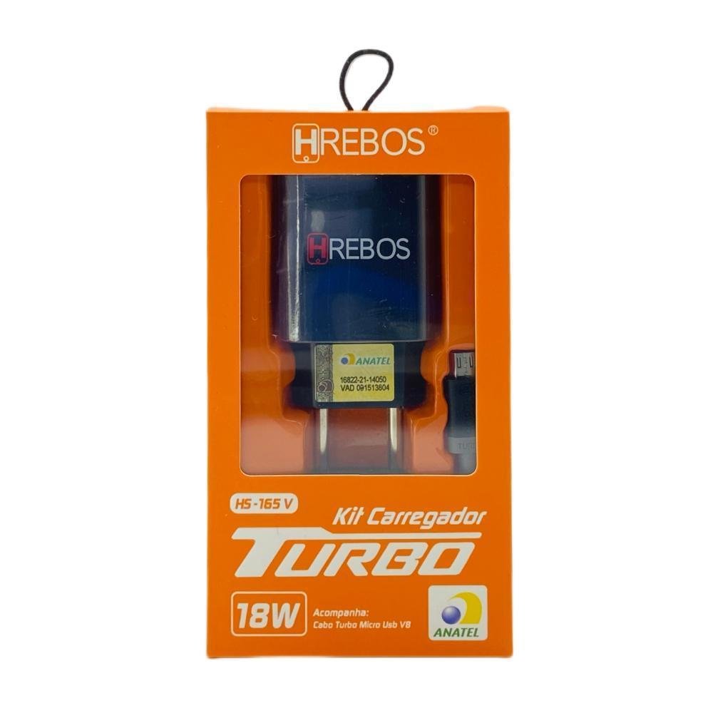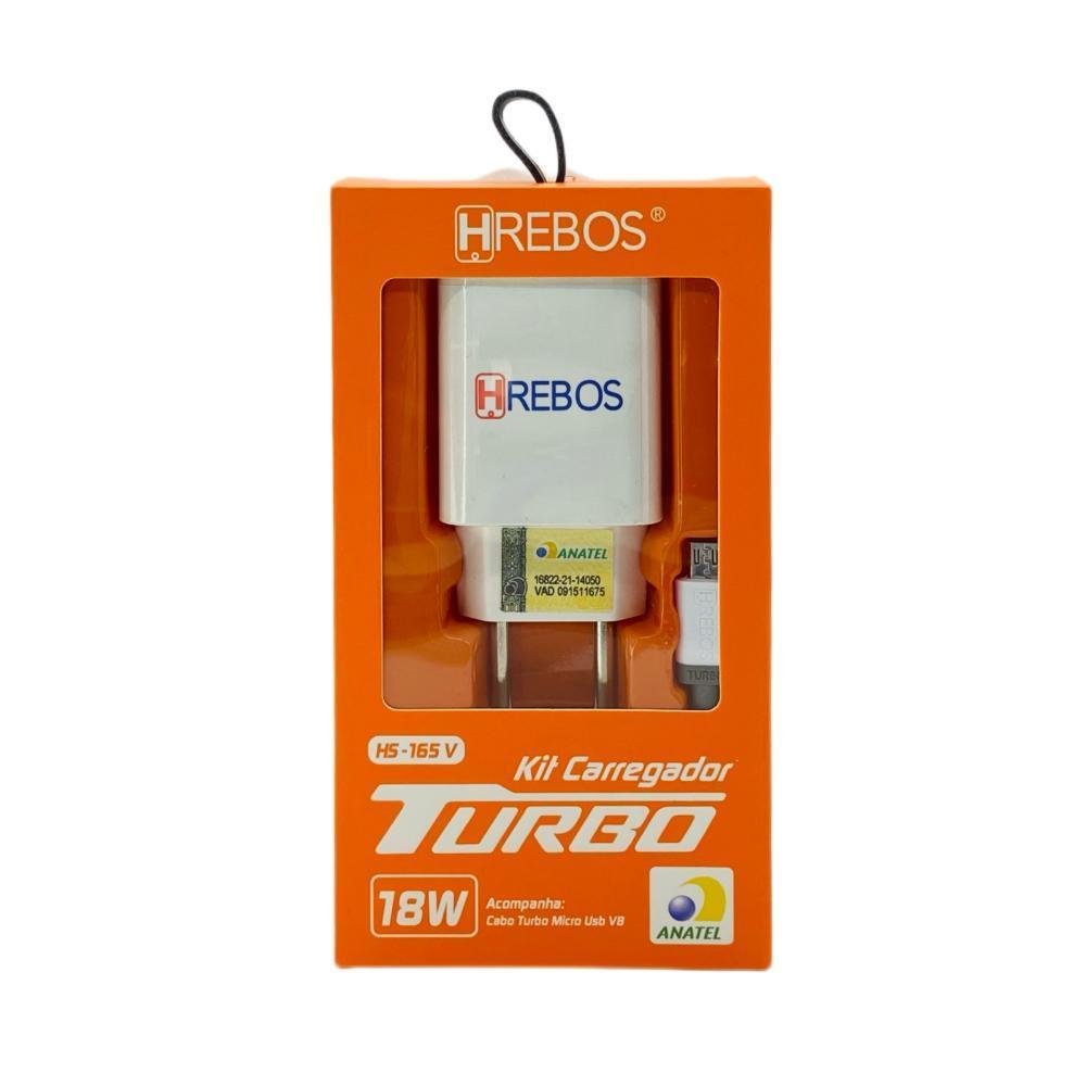 Carregador Completo V8 Hrebos, Micro USB, Fonte Cabo Turbo 18w