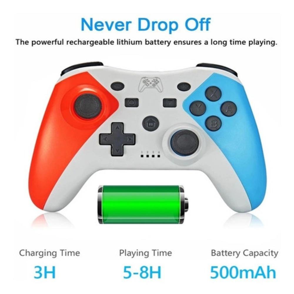 O Controle Nintendo Switch Bluetooth Wireless Vibração Dupla - Branco é um gamepad wireless compatível com Nintendo Switch, smartphones Android e PC. Com excelente qualidade e durabilidade, oferece comandos perfeitos e precisos, além de cores vivas e vibrantes. Possui controle de movimento, motores duplos ajustáveis e turbo auto/manual ajustável, o suficiente para satisfazer cada gamer. Com os motores embutidos de 6-axis gyro, função do motor duplo e função turbo de interruptor, é o melhor substituto para os controladores Pro. A bateria tem autonomia de até 8 horas e o modo turbo, vibração dupla, 6 axis e wake up console são algumas das suas características. Segurando a tecla home por 3 segundos, é possível acionar o console. Itens inclusos: 1 controle, 1 manual e 1 cabo de carregamento USB. Compre agora o seu Controle Nintendo Switch Bluetooth Wireless Vibração Dupla - Branco e tenha uma experiência única de jogo!