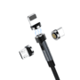Cabo de Carregamento Magnético 3 em 1 Hubonic, USB-C Lightning, Micro USB Giratório, Nylon Trançado, Iphone, Samsung, 2 Metros