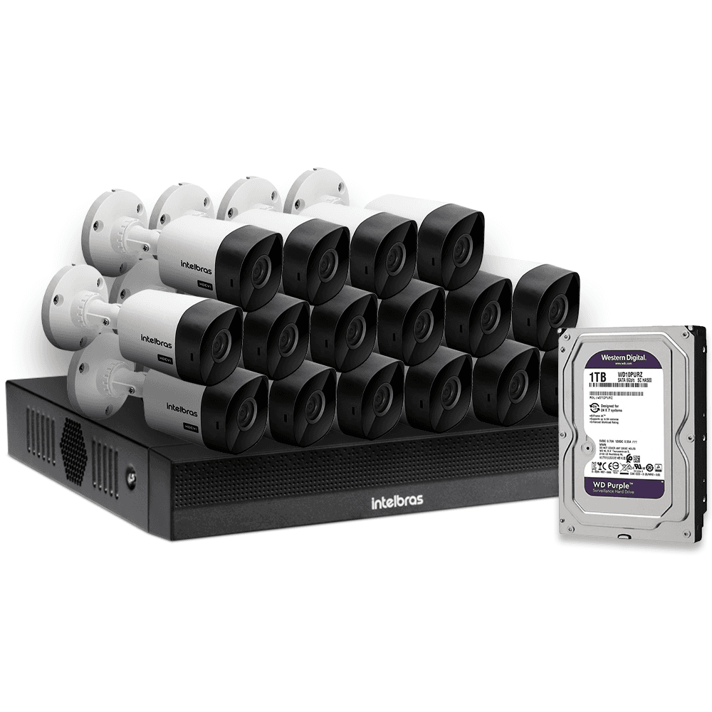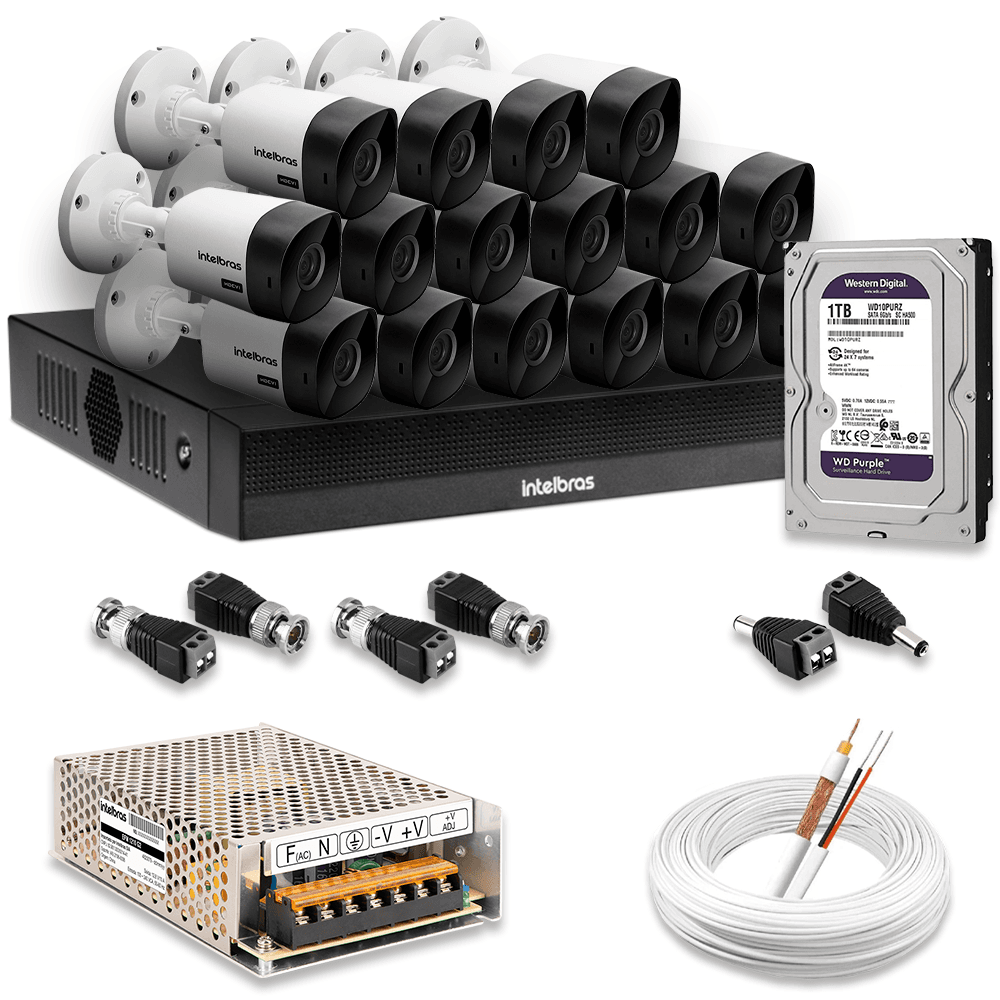 Kit 16 Câmeras De Segurança Intelbras Hd 720p Com Dvr Mhdx 1016-c Full Hd L Com HD 1TB Purple | Completo 100% Intelbras