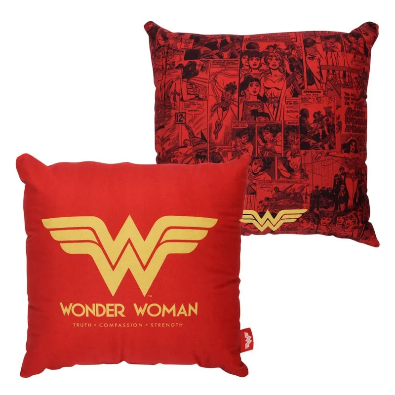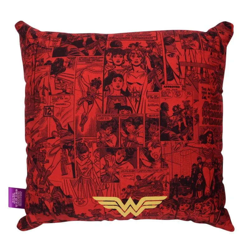 Almofada 40x40 mulher maravilha hq depois de um dia cheio de aventuras, você precisa de uma pausa para descansar? Então essa almofada é para você! Perfeita para os dias de preguiça, não importa se é no sofá ou na cama, essa almofada te acompanha em todos os lugares!