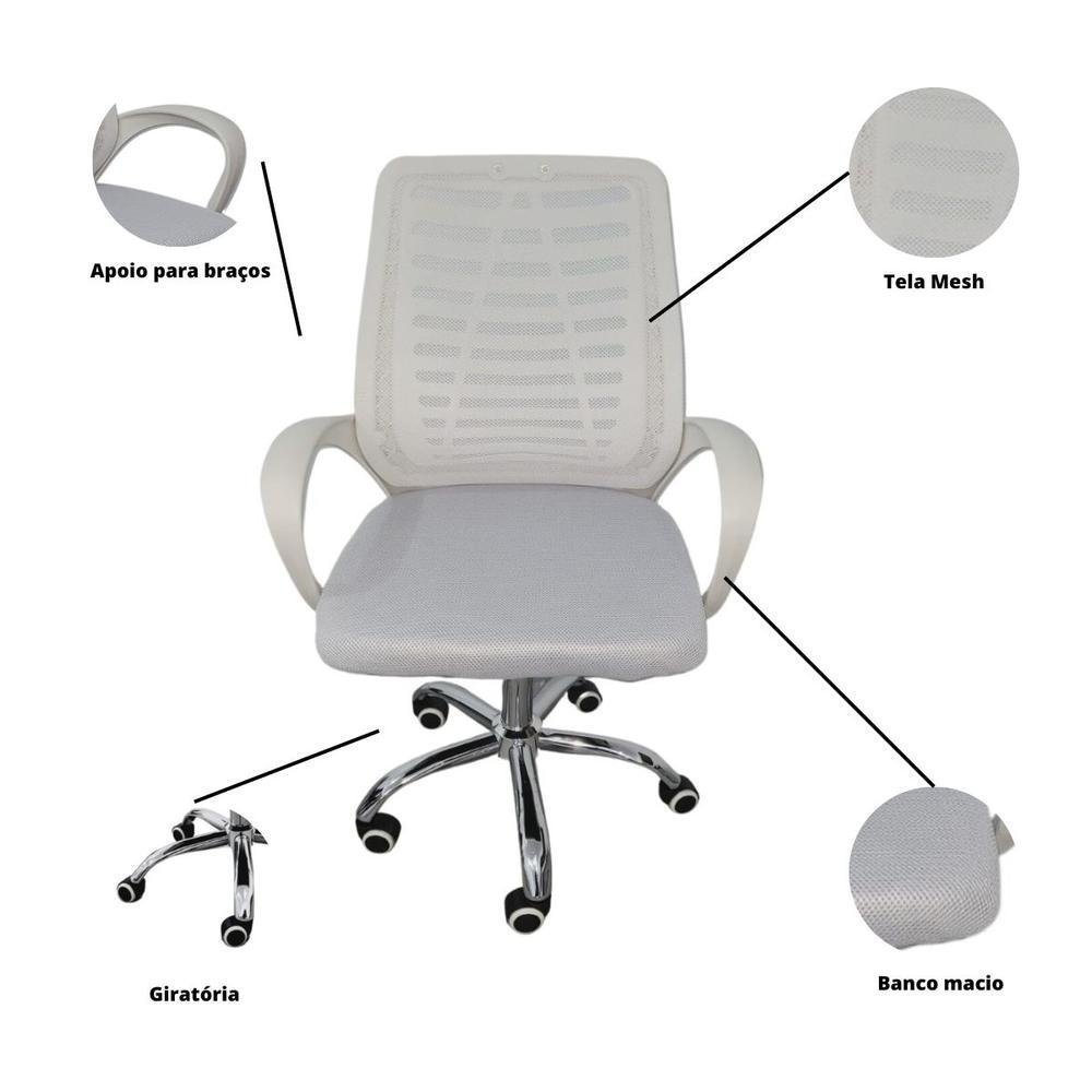 Kit 5 Cadeiras De Escritório Esteirinha Mesh, Ergonômica, Branco
