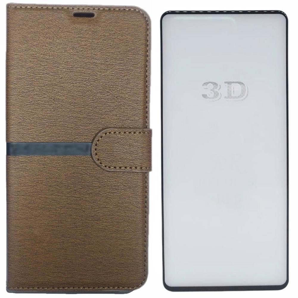 Kit Capa Carteira Compatível C/ Samsung A14 + Película 3d Cor:marrom