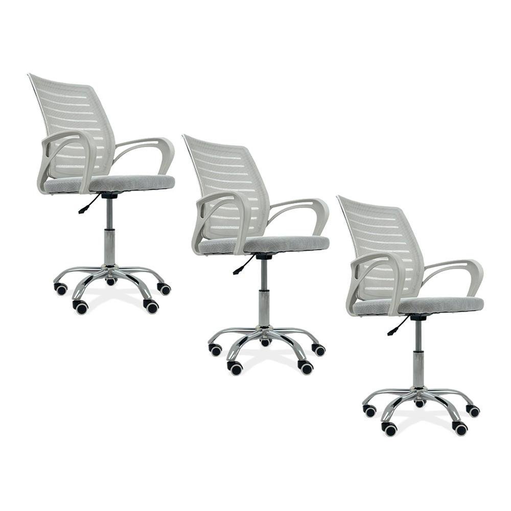 Kit 3 Cadeiras De Escritório Secretaria Diretor, Roma, Ergonômica, Branca