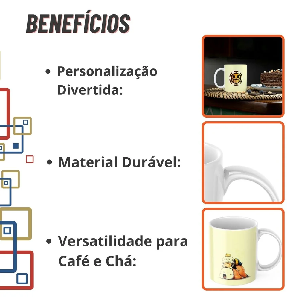 caneca otaku personalizada anime one piece trafalgar d. Law: celebre seu amor por one piece e trafalgar d. Law com estilo! Cansado de canecas sem graça e que não demonstram sua paixão por one piece e trafalgar d. Law? Chega disso! Com a caneca otaku personalizada anime one piece trafalgar d. Law, você vai ter a oportunidade de mostrar para o mundo todo o seu amor por esse anime incrível e por um dos seus personagens favoritos. Feita em porcelana de alta qualidade, essa caneca é perfeita para café, chá, chocolate quente ou qualquer outra bebida favorita. Com 325ml de capacidade, ela é ideal para te acompanhar em todos os momentos do dia, seja assistindo aos episódios de one piece, lendo o mangá ou apenas relaxando em casa. Mas o que torna essa caneca realmente especial é a sua estampa personalizada. Com a imagem do trafalgar d. Law, um dos personagens mais populares e queridos de one piece, e seu nome ou uma frase especial, você vai ter uma caneca única e exclusiva que vai demonstrar todo o seu amor por esse anime. É o presente ideal para qualquer otaku que ama one piece e trafalgar d. Law. Uma lembrança que ele vai usar com orgulho no dia a dia e que vai arrancar elogios de todos os seus amigos fãs do anime. Então, não perca mais tempo e personalize agora a sua caneca otaku personalizada anime one piece trafalgar d. Law!