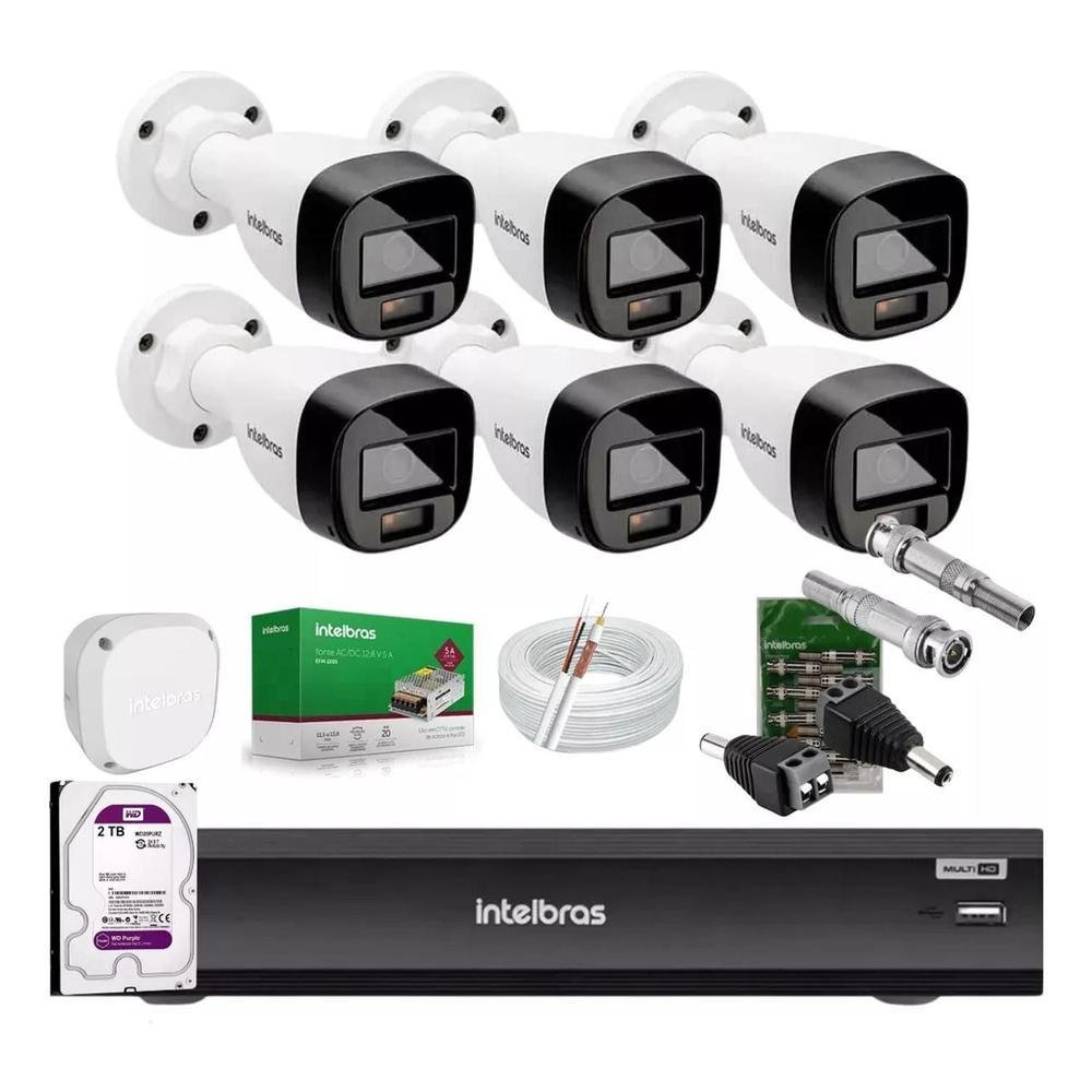 Kit 6 cameras segurança intelbras vhd 3220b+ microfone audio full color dvr imhdx 3008 2tb purple