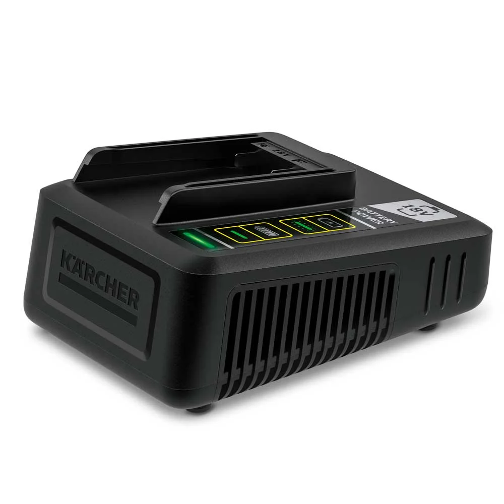 Produtos a bateria possibilitam maior flexibilidade e mobilidade e, por isso, a kärcher desenvolveu uma linha completa de equipamentos para jardinagem, aspiradores e lavadoras de alta pressão, pensando sempre em praticidade e tecnologia. as baterias possuem: - display lcd com tecnologia real time que permite acompanhar a autonomia da bateria. - modo de carregamento automático: módulo automático garantindo a durabilidade da bateria. - possui proteção ipx5, o que protege a bateria contra umidade - proteção de sobrecarga da bateria: células inteligentes que monitoram e protegem contra sobrecargas durante a utilização. - robustez: carcaça resistente a impactos. - monitoramento de temperatura eficiente - bateria de íon-lítio de alta performance: desempenho estável com baixo auto-descarregamento e sem efeito memória. *bateria não inclusa dados técnicos tensão de entrada [v]: 100-240 frequência de entrada [hz]: 50/60 consumo de energia [w]: 120 corrente máxima de saída [a]: 2.5 comprimento do cabo [m]: 2 peso bruto [kg]: 0,677 dimensões sem embalagem [mm]: 183,9 x 132,7 x 87,1 classe de proteção: ip20 tempo de carregamento com carregador 80% [min]: 48 (18 v / 2.5 ah) - 98 (36 v / 5.0 ah) tempo de carregamento com carregador 100% [min]: 78 (18 v / 2.5 ah) - 138 (36 v / 5.0 ah)- produto isento de certificação inmetro, conforme art. 4°, portaria n.º 328, de 08 de agosto de 2011.