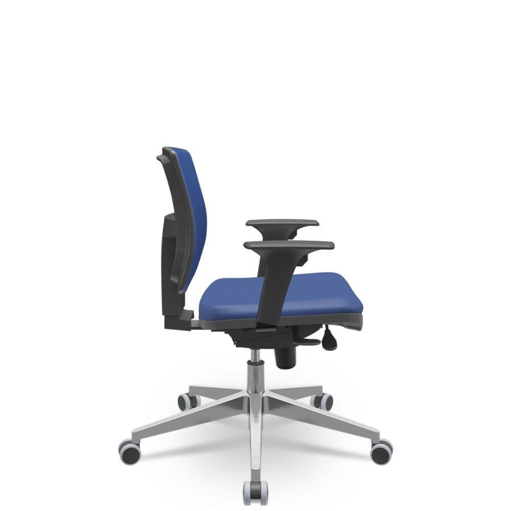 A brizza executiva é composta de espuma de ótima resiliência que se molda ao contorno corporal e oferece alto nível de conforto. O ajuste de altura em relação ao solo e a profundidade do assento atendem diferentes estaturas, resultando em alívio da pressão sanguínea corporal. Isso acarreta redução no cansaço decorrente da permanência na posição sentado. corpo assento e encosto vinil azul t32 sombra atributos base alumínio rodízio pu 55 mecanismo slider apoio de braço regulável suporte de peso 110kg